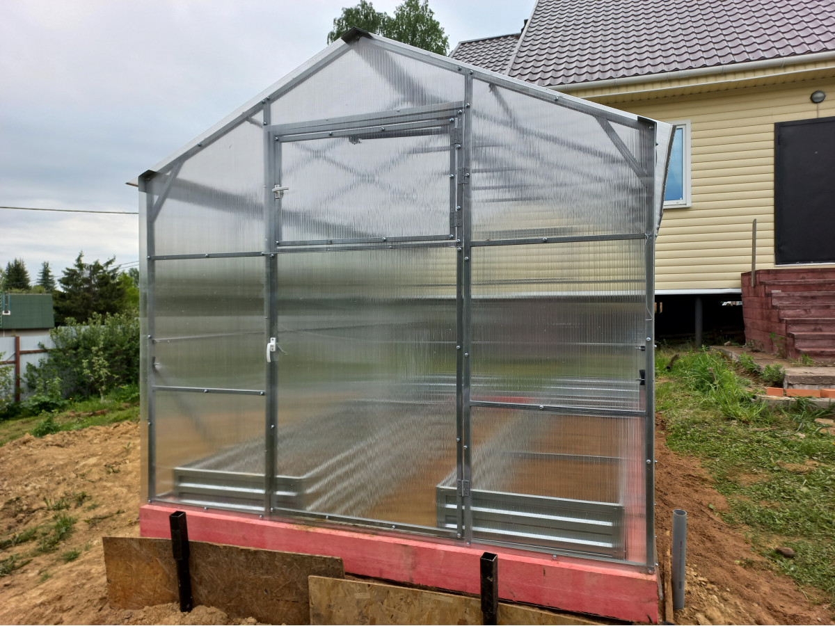 • практичный каркас с дверьми и форточками в каждом торце обеспечивает легкий доступ в теплицу и её проветривание;