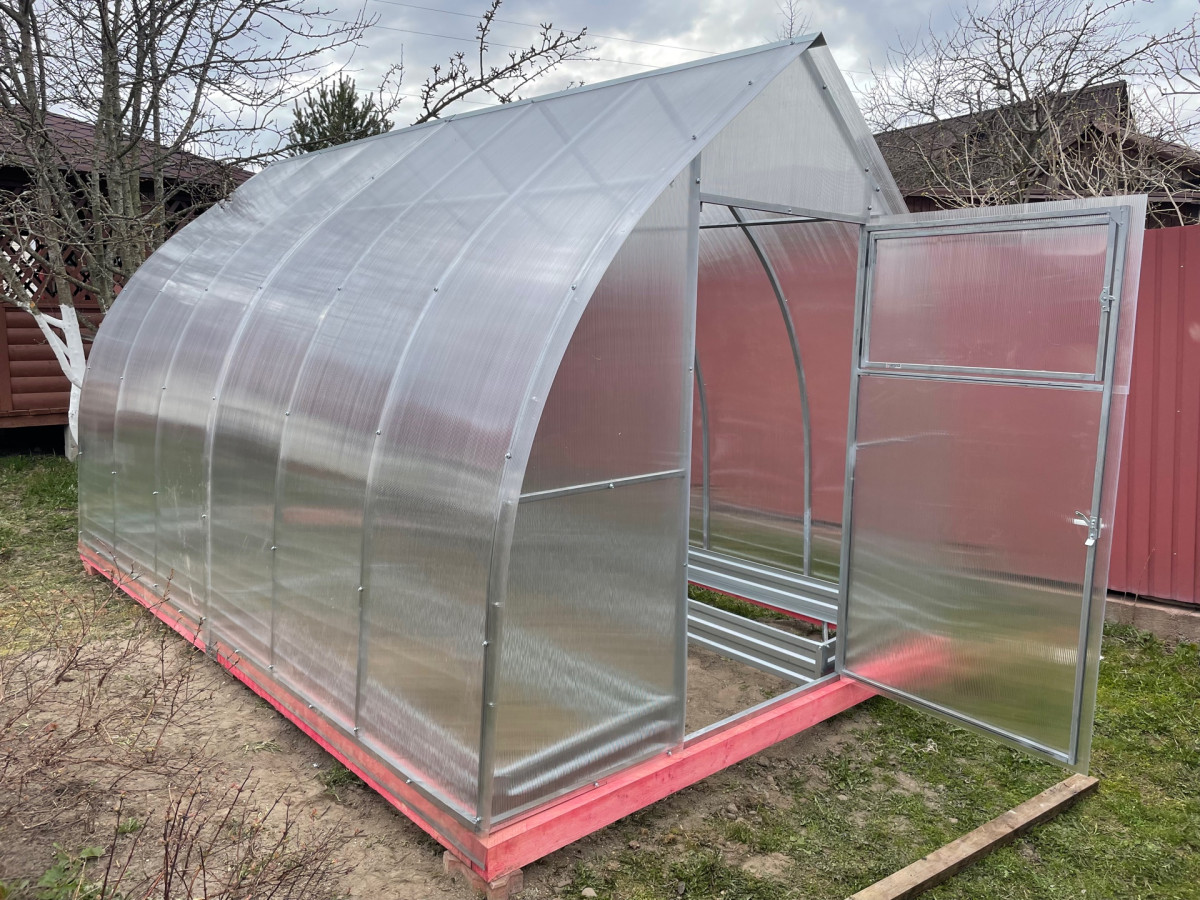 Теплица из поликарбоната Усиленная Капелька 2,5х6 h=2.3 м профиль 25х25 мм